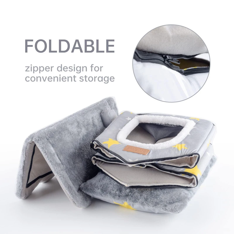 Casa de perro utilizable de cuatro estaciones-La alfombra dentro de la casa para perros tiene dos lados, uno es suave para el verano y el otro es de felpa para el invierno. En el caluroso verano, el techo también se puede quitar para permitir suficiente viento dentro de la casa del perro, y se puede colocar una nevera en la alfombra para permitirles dormir mejor. Nota: Los cachorros/gatos de 0-5 meses tienen una inmunidad relativamente pobre, es mejor no dejarlos dormir directamente en el suelo, lo que puede conducir fácilmente a un bazo débil, diarrea, resfriados.