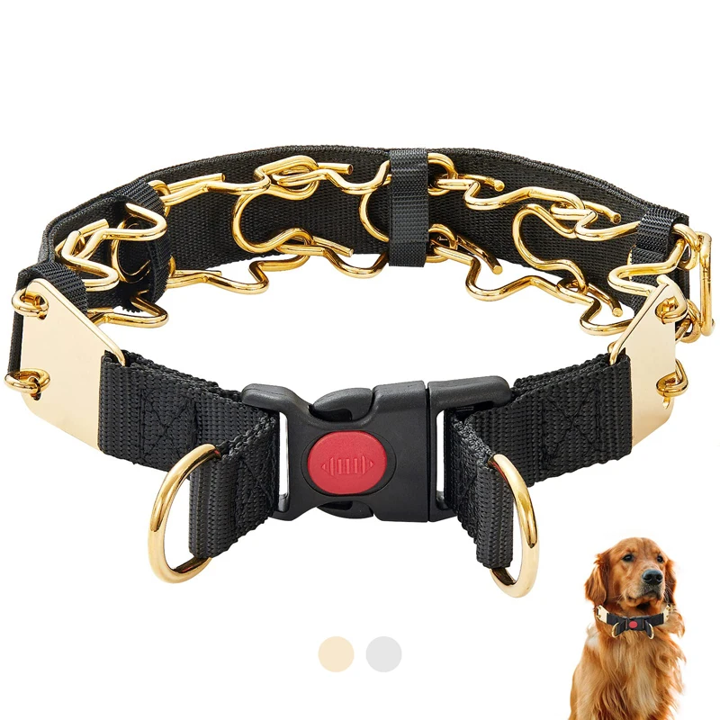 Coloque la posición correcta en el cuello de su perro. Si el tamaño no encaja, puede ajustarlo eliminando o agregando enlaces.