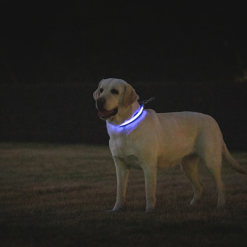 BRILLO EN LA OSCURIDAD-Este Collar para perros recargable proporciona una luz súper brillante, parpadeando en 3 modos durante mucho tiempo, que mantiene a su perro muy visible fuera y es el mejor compañero para sus perros durante el paseo y camping por la noche para evitar que se pierda.