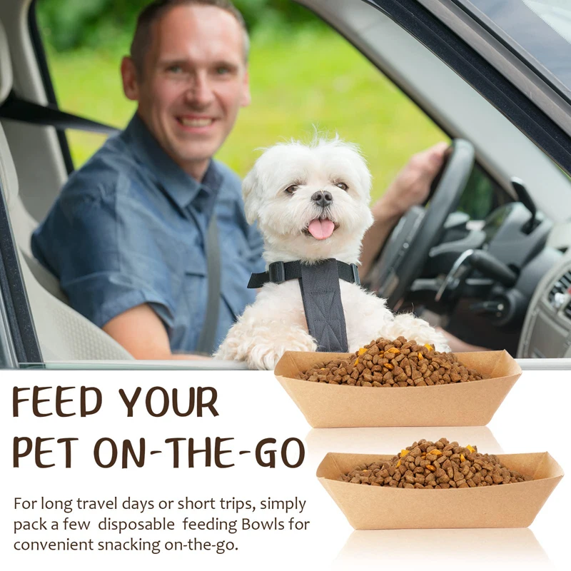 Alimente a su mascota sobre la marcha: para viajes largos o viajes cortos, simplemente empaque algunos cuencos de alimentación desechables para refrigerios convenientes sobre la marcha.