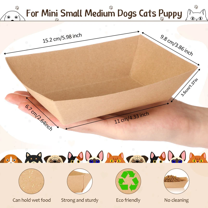 Paquete rico:Se le proporcionarán 100 unidades de cuencos desechables para mascotas en un paquete, la cantidad adecuada puede satisfacer plenamente las necesidades diarias de su mascota, también puede compartir con compañeros íntimos y miembros de la familia que poseen mascotas