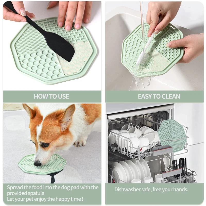 Extiende la comida a la almohadilla para perros con la espátula proporcionada, ¡deja que tu mascota disfrute de un momento feliz!