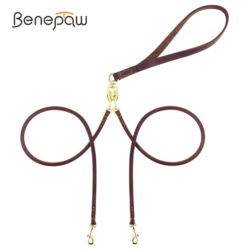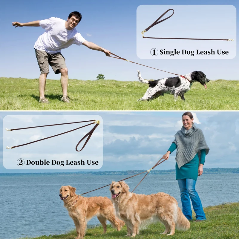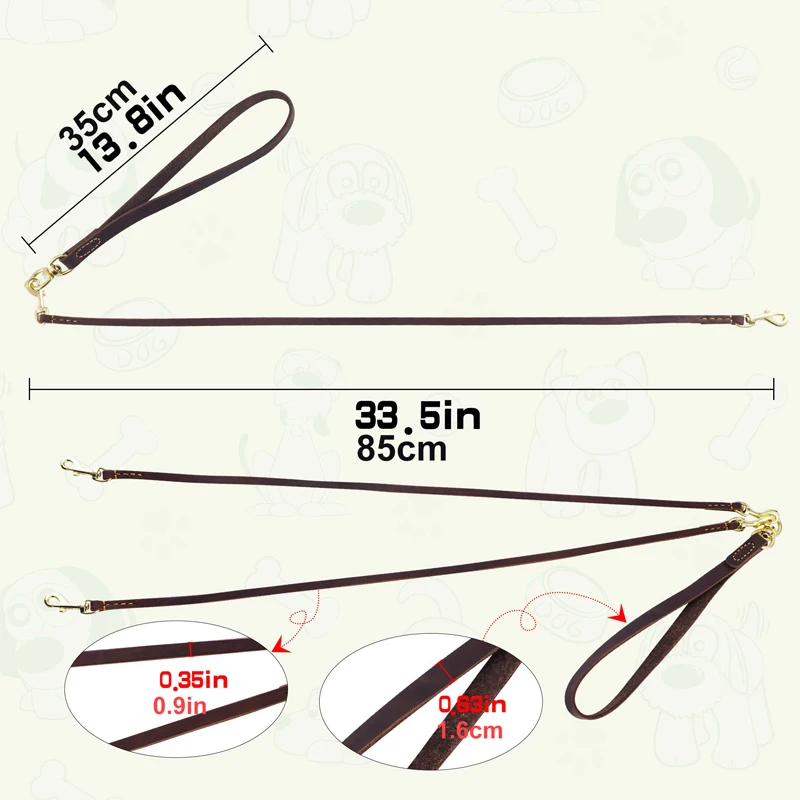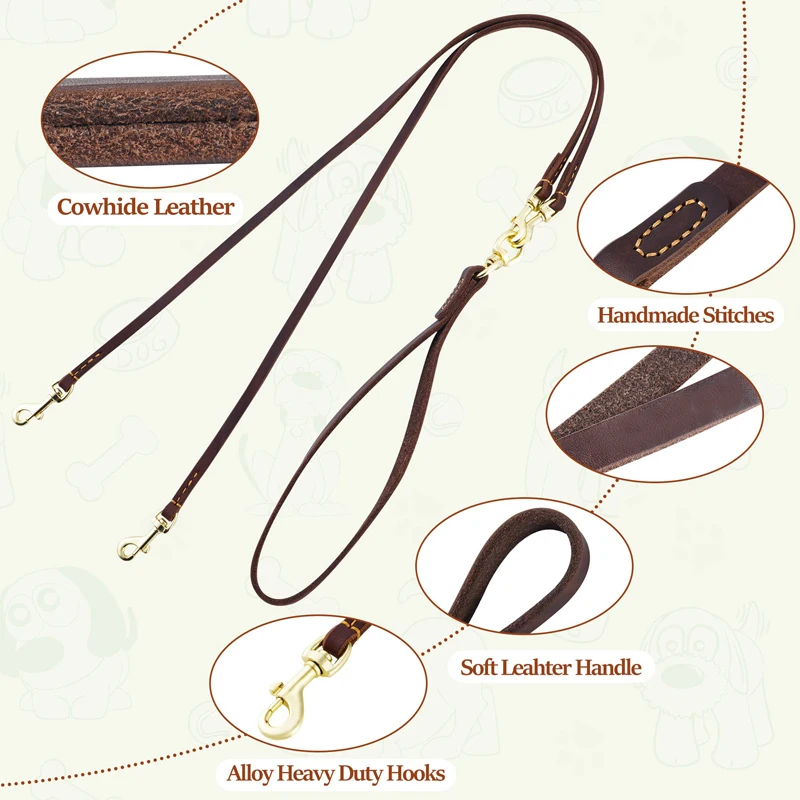 CORREA PARA PERRO DE CUERO REAL:Hecho de cuero de vaca suave y flexible que es natural y biodegradable sin manchas ni productos químicos, esta correa de perro de 2 vías tiene puntadas bellamente hechas a mano que es muy fuerte y resistente y el borde de la correa plana que no se rasgará en sus manos ni recogerá el pelo como correas de nylon incluso su perro tira muy fuerte.