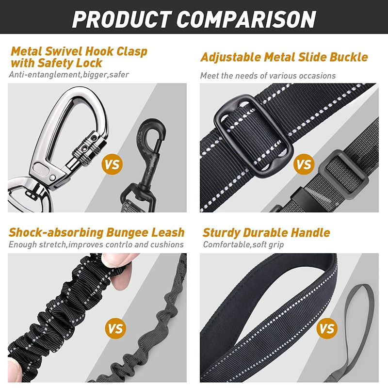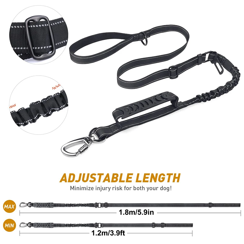 CORREA BUNGEE AMORTIGUADORA-Esta fuerte correa para perros utiliza la innovadora tecnología Zero Shock BUNGEE, perfecta para controlar y amortiguar la tracción, ¡lo que hace que el paseo de los perros Sea agradable! Si su perro es un tirador fuerte, definitivamente necesita una correa antichoque indestructible