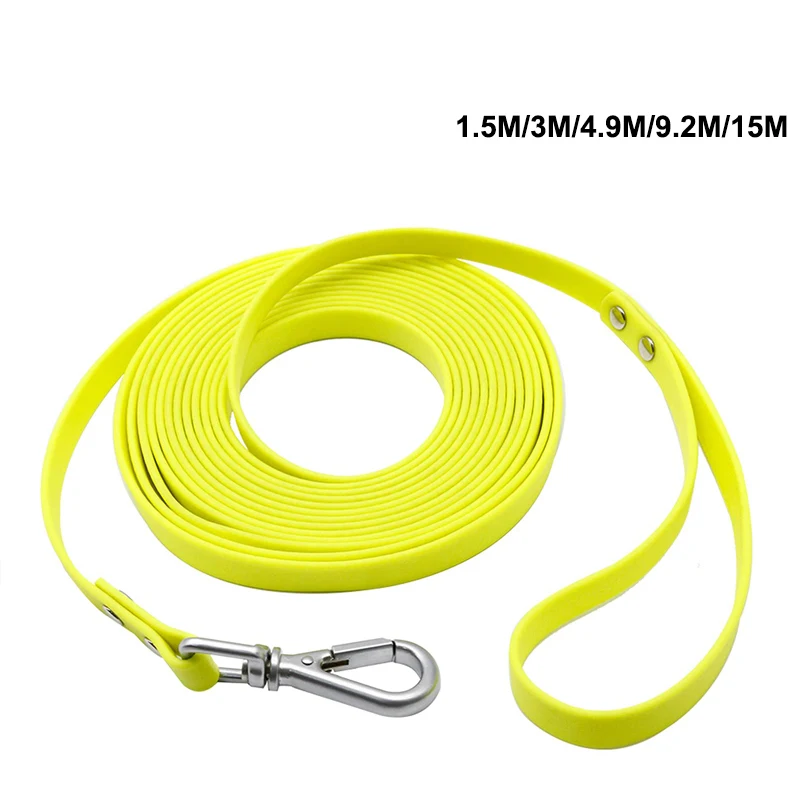 DISEÑO IMPERMEABLE:La correa del perro puede arrastrarse por el agua y la arena sin mojarse y la arena no se adhiere a ella. Fácil de limpiar, no se moja ni apesta del todo. El material es bastante poco propenso a anudarse, incluso cuando gira alrededor de las patas de otros perros.