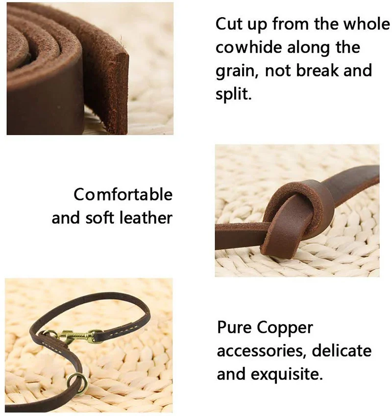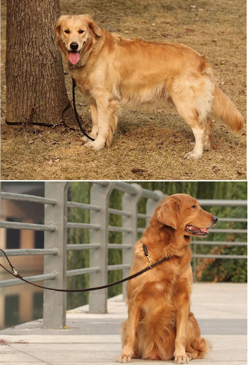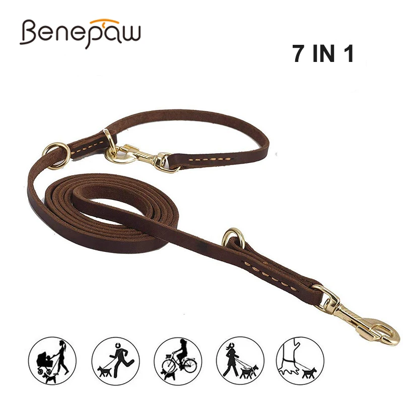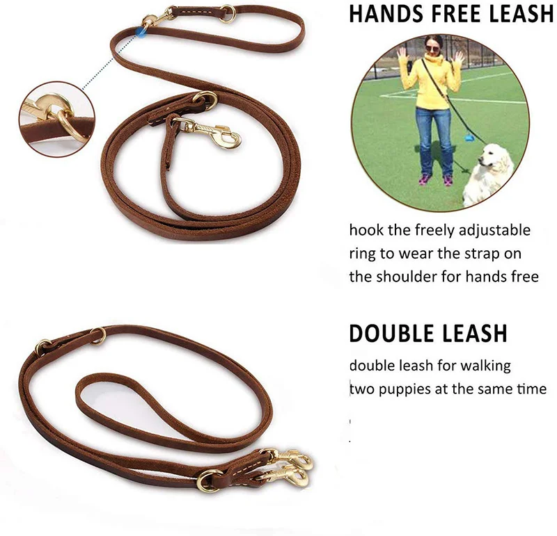 Strong Leather Leash for 7-Way Usage - Long leash, medium leash, short leash, quick tie leash, P leash, hands-free leash and double leash