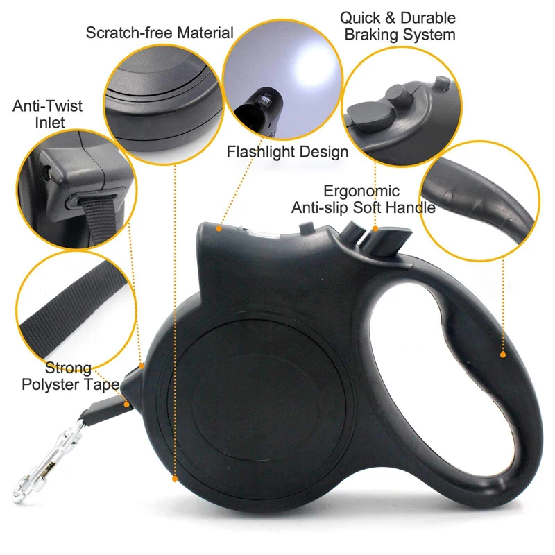 【La correa retráctil para perros es adecuada para perros pequeños y medios】La correa retráctil para perros de 5m/16.4ft proporciona más libertad para su mascota. Adecuado para perros pequeños y medianos.