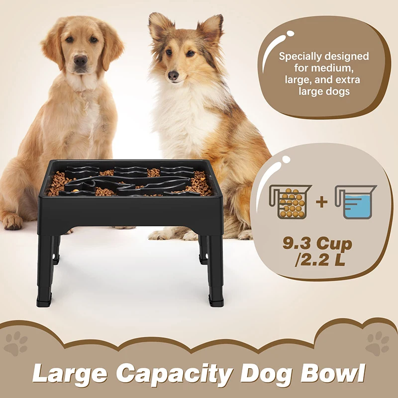 【Diseño antideslizante】El cuenco de alimentación lenta elevado está equipado con almohadillas de goma antideslizantes en el extremo de las patas, que no solo evitan que su piso se raye, sino que también evitan que se mueva y se deslice cuando su perro está comiendo. Proporcione un espacio cómodo para comer para su mascota y reduzca el tiempo de limpieza. Nota: Coloque el tazón para mascotas contra la pared para evitar que las mascotas lo pateen.