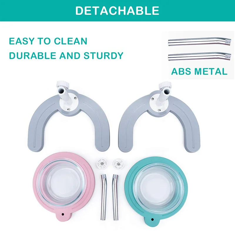 Cuencos dobles de elección segura:El cuenco está hecho de marco de PVC de vidrio duradero, soporte de cuenco de metal ABS, piezas de tornillo adicionales incluidas (se puede reemplazar con otros cuencos si el cuenco se ajusta al marco)