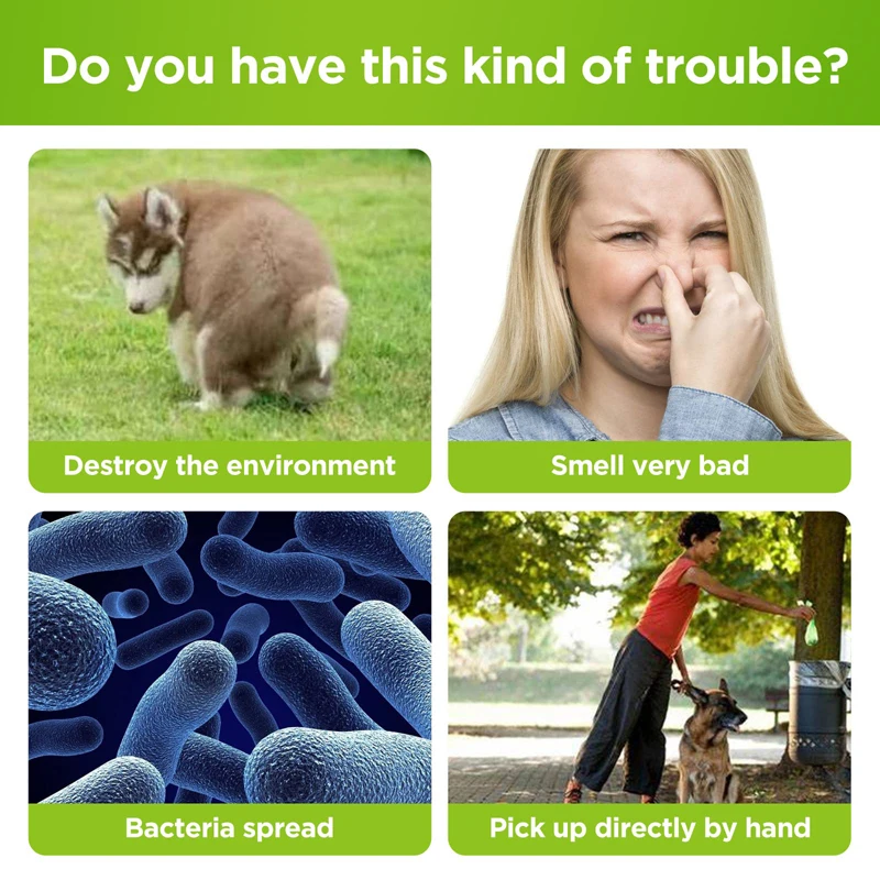 Nuevo Diseño:El diseño 2 en 1 incluye un dispensador de bolsas en la cuchara de heces del perro. El diseño innovador es diferente.