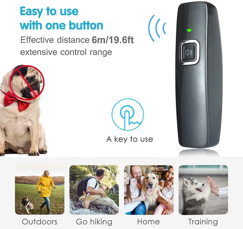 【Diseño humano y tamaño portátil】Cuando presiona el botón, los dispositivos de mano para detener los ladridos del perro pueden emitir un sonido ultrasónico para atraer la atención del perro y evitar que ladre en exceso. ¡El indicador LED en la parte superior del botón puede mostrar las condiciones de funcionamiento o la batería baja! ¡La correa de muñeca antiestática de tamaño pequeño y equipada le facilita llevarla donde necesite!