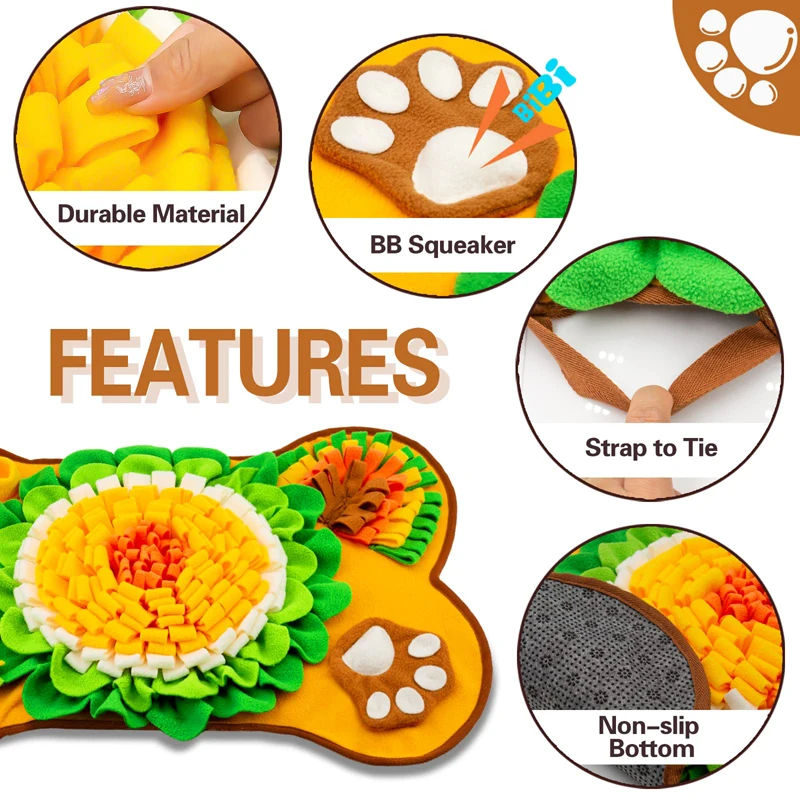 【Duradero y SOFT】El tapete está hecho de un cómodo forro polar, y la parte inferior es un paño antideslizante de alta calidad resistente a las picaduras. La tela suave hace que sea menos probable que los perros se lastimen mientras olfatean. Un chirriante en La Palma puede estimular el interés del perro en jugar.