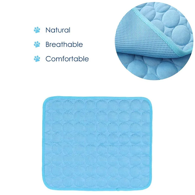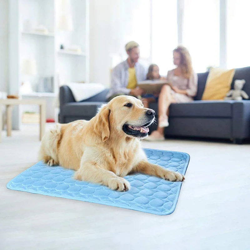 Multiusos--- La alfombra de seda de hielo se puede colocar directamente en el suelo para que los perros duerman y se sientan frescos, también se puede colocar en el nido, la jaula, las perreras, el sofá, la cama, etc.