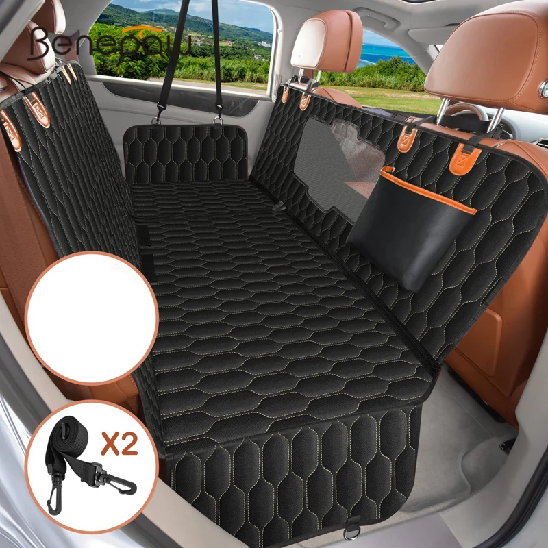 ¡La calidad refinada mejora tu coche!-Elaborada con paños de 5 capas, la funda de asiento para mascotas de coche Benepaw garantiza una calidad resistente al agua al 100% a prueba de arañazos y evita que la funda de asiento de coche de tu perro se babee, pierda patas de hierba y desprenda pelo, ¡Lo suficientemente fuerte como para sostener a tus mascotas de 90lb! Además, la cubierta más gruesa y duradera les da calidez en el invierno; ¡el patrón estético le da un aspecto lujoso a su coche!