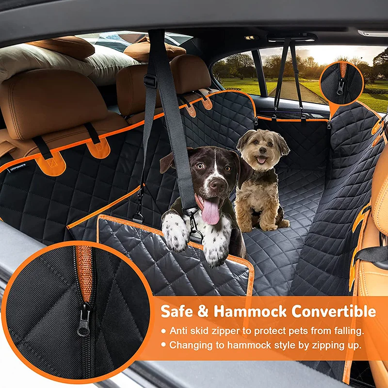 100% IMPERMEABLE Y IMPERMEABLE -Fabricada con telas de 4 capas, esta funda para asiento de automóvil para perros es 100% impermeable para proteger su asiento del barro, los líquidos, el pelo o cualquier desorden, duradera para evitar rayar los asientos de cuero y cómoda para un largo viaje por carretera.No más barrido sin fin.
