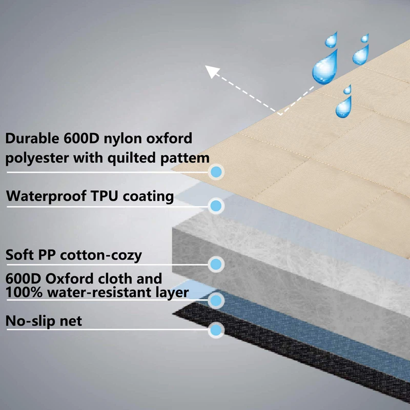 Durable 600D nylon Oxford poliéster con patrón acolchado/revestimiento de TPU impermeable/suave PP algodón-acogedor/600D tela Oxford y 100% capa resistente al agua/red antideslizante