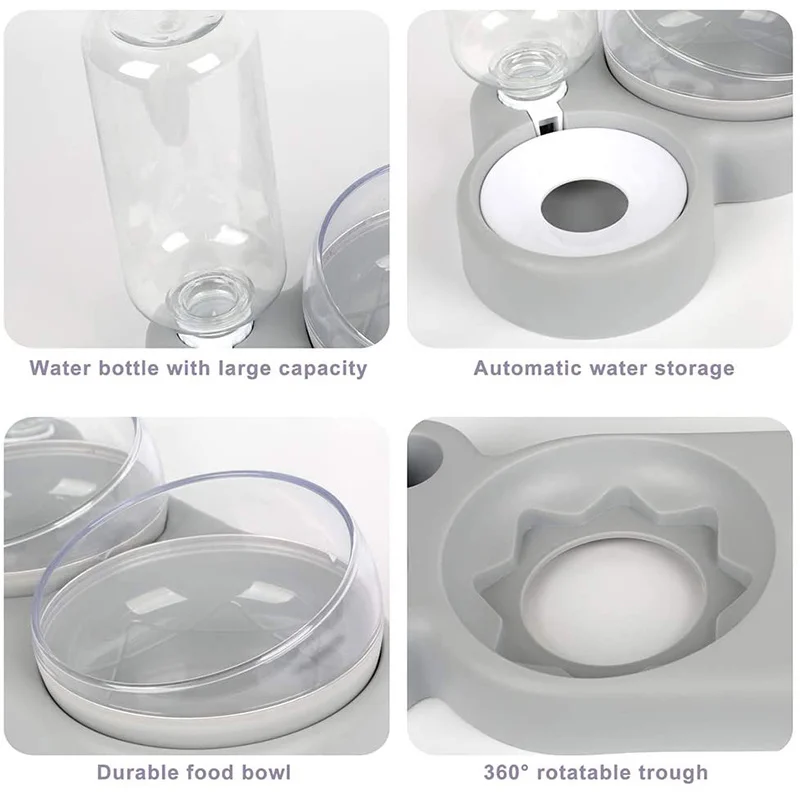 Botella de agua de gran capacidad/Almacenamiento automático de agua/Cuenco de comida duradero/Canal giratorio de 360 °