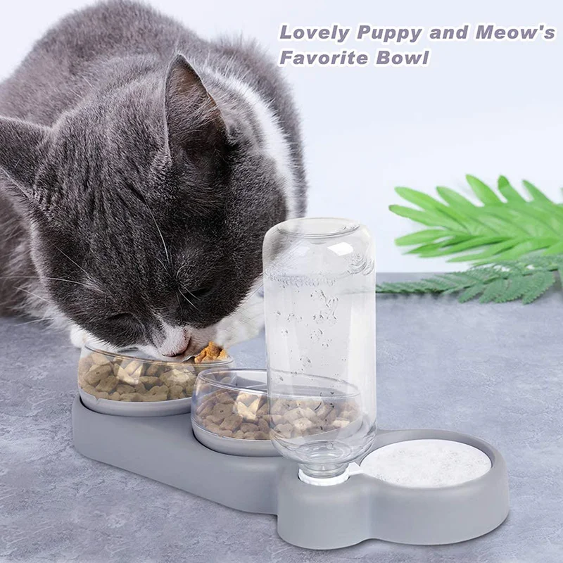 【Diseño novedoso】Benepaw-Juego de cuencos de agua y comederos automáticos 3 en 1, dos cuencos de comida de plástico para perros y gatos que pueden contener comida seca para perros y gatos y comida húmeda para perros por separado, inclinación de 15 ° para proteger el cuello del gato, tazón de comida doble, juego de tazón de comida doble giratorio de 360 °, 3 gatos gordos pueden comer sin amontonarse.