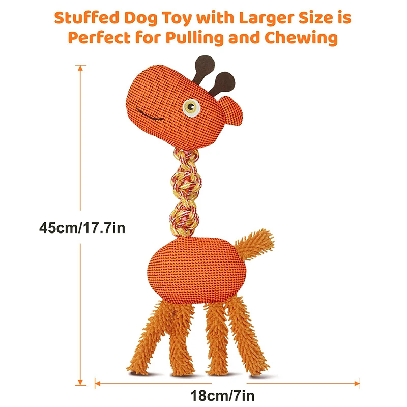 Modelo de jirafa: el cuello está hecho de cuerda de nailon resistente, perfecto para que los perros jueguen e interactúen.