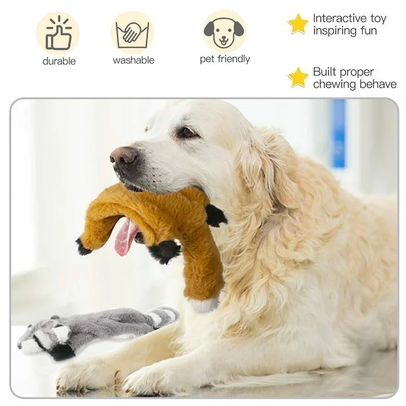 Varios diseños de animales incluyen cervatillo, cebra, mofeta, ardilla, zorro, Tigre, mapache. El diseño del animal es muy lindo y divertido, atrae la atención de su perro y puede disfrutar de un juego duradero que lo mantendrá ocupado durante horas y lo ayudará a mantenerse alejado del aburrimiento.