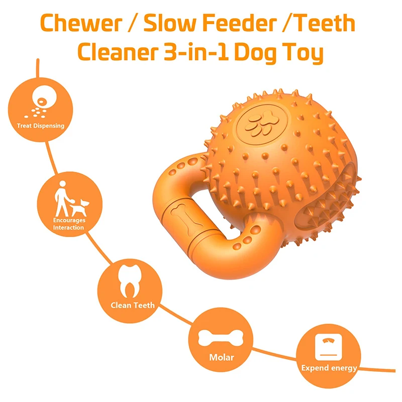 Juguete para perros masticador/alimentador lento/limpiador de dientes 3 en 1