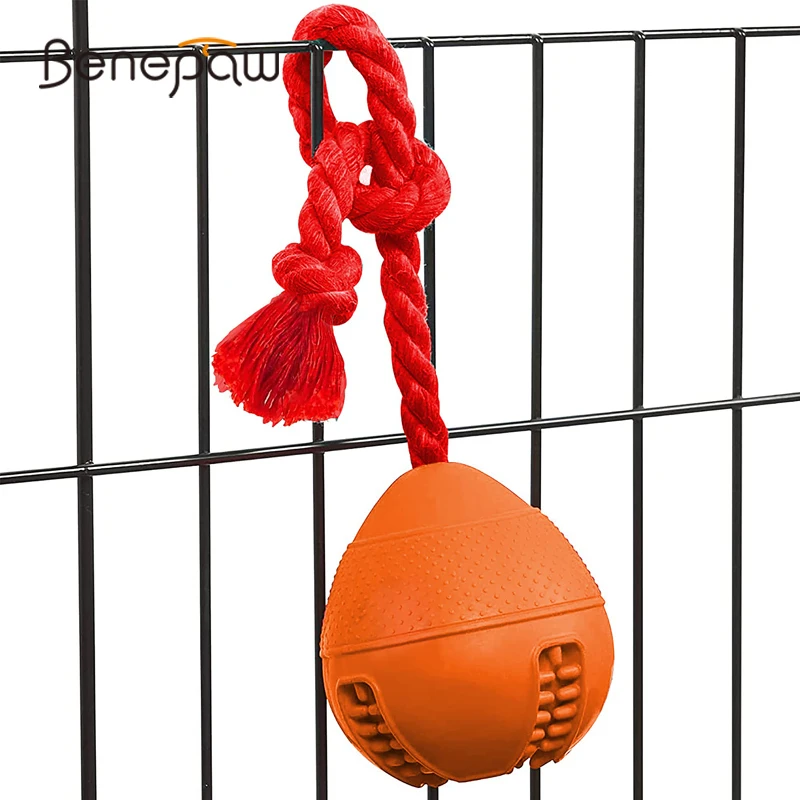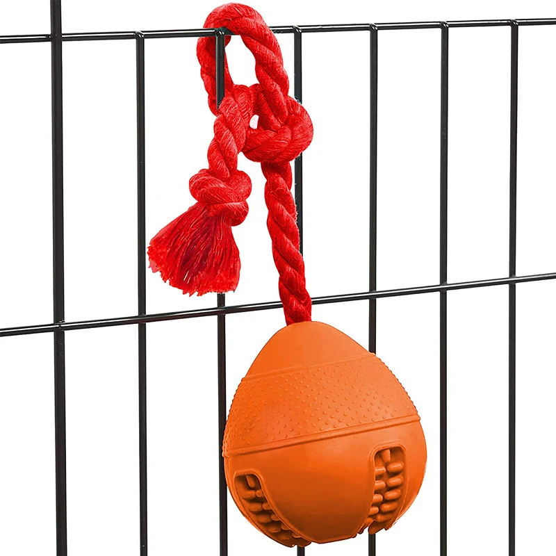 Material no tóxico:Este juguete de jaula para cachorros está hecho de caucho natural sin BPA que es seguro y no tóxico, el juguete de entrenamiento para perros tiene buena elasticidad, es antimordeduras, no tóxico, no abrasivo, seguro y puede hacer que su perro lo use con confianza, las crestas y púas alrededor de la abertura ayudan a limpiar los dientes del cachorro, La superficie lisa también es fácil de limpiar con agua.