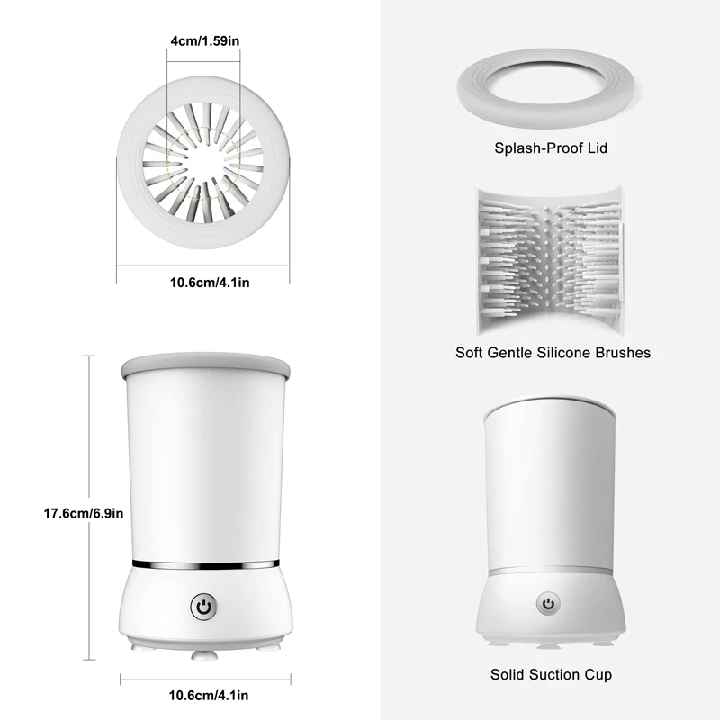 [Fácil desmontaje y limpieza]:3 pasos para lavar la taza del limpiador después de su uso, Primero retire la cubierta de la lavadora, retire la almohadilla de silicona del cepillo y lave los cepillos directamente.