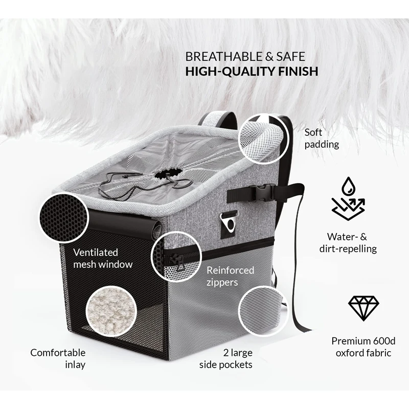 Cómodo y transpirable-Gracias a la ventana de malla de ventilación del transportador de perros para la bicicleta, su cachorro tendrá un flujo de aire ideal. Los lados acolchados y la alfombrilla extraíble garantizan la máxima comodidad para viajes más largos.
