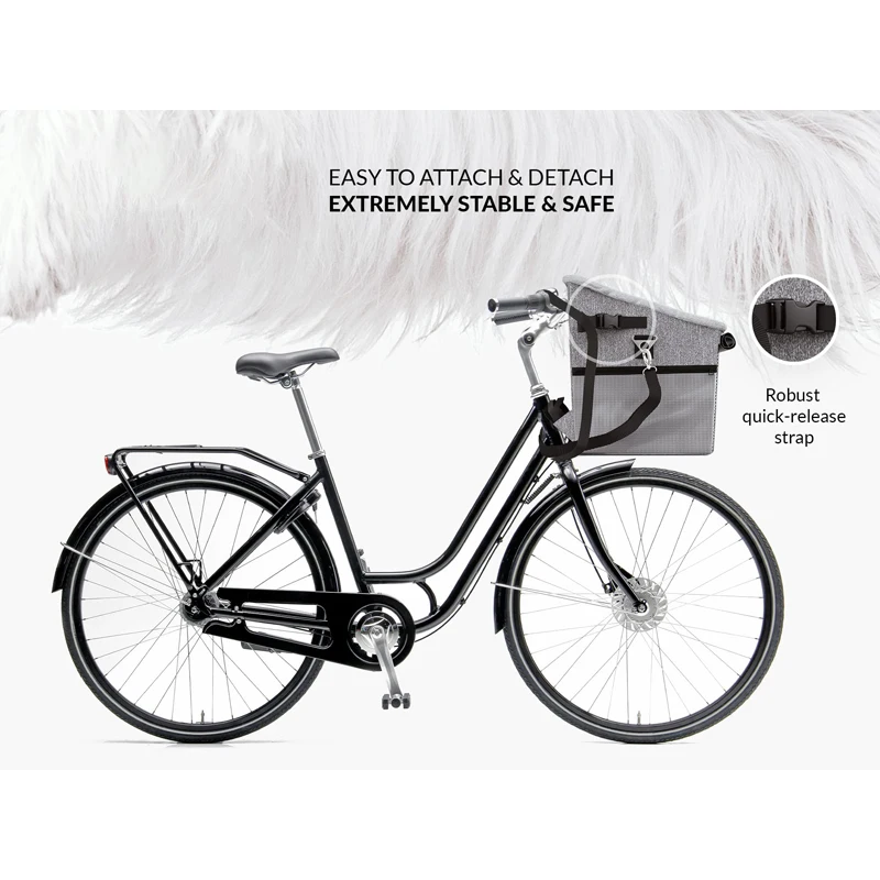 La correa de liberación rápida de la cesta para perros hace que sujetar y separar el transportador de mascotas para montar en bicicleta sea súper fácil.