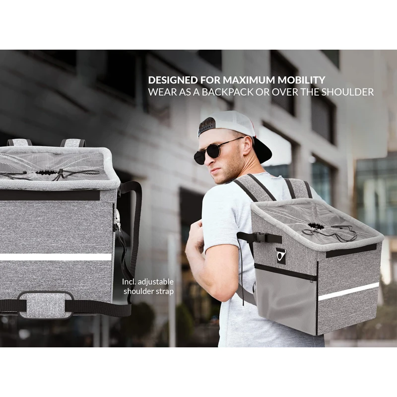 Multifuncional-Una vez que haya terminado de montar su bicicleta, simplemente coloque la correa de hombro incluida y lleve el transportador de perros de bicicleta sobre el hombro o como mochila, ideal para transporte o viaje.