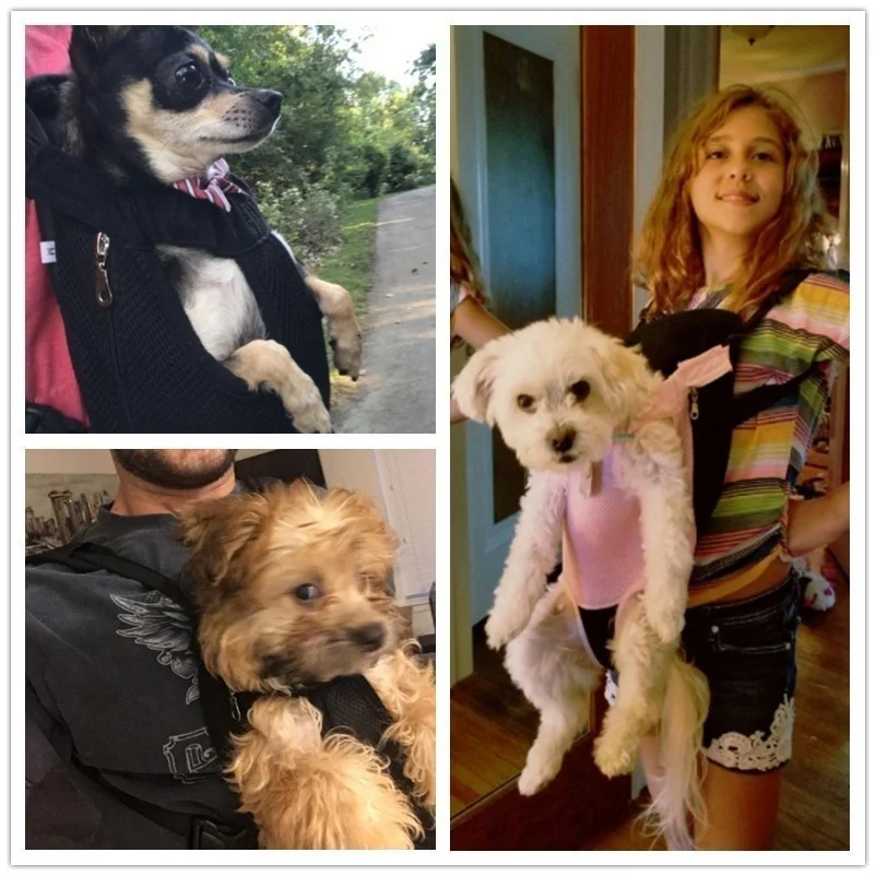Las correas ajustables con clips se usan en la parte delantera o trasera, para una fácil instalación y reducir la presión sobre los hombros y mantener a su perro o gato cerca de su corazón