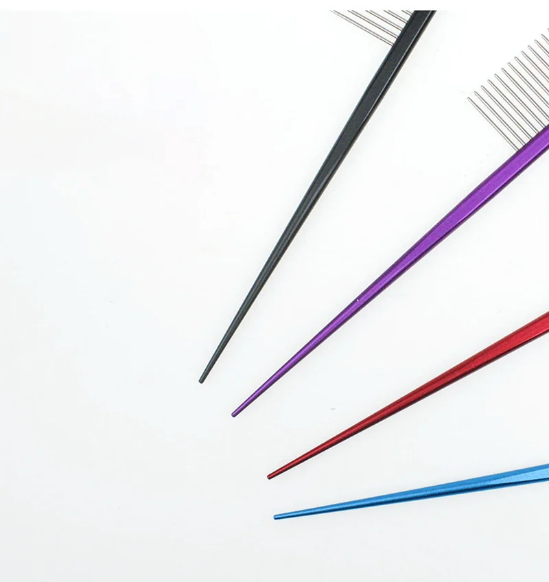 CREA FÁCILMENTE EL ESTILO:La punta y la cola del peine pueden dividir rápidamente el cabello, peinar el vello facial y la barba, también puede atar pequeñas trenzas, lazos, cómodo y fácil de usar.