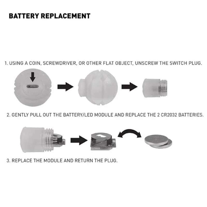 JUEGO NOCTURNO SIN FIN CON BATERÍAS REEMPLAZABLES-Las baterías fácilmente reemplazables viven bajo una tapa roscada que debe revisarse y apretarse regularmente.