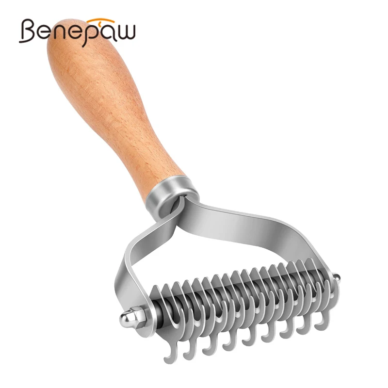 【Hoja afilada】Este rastrillo de base Benepaw diseñado con una cuchilla afilada de acero inoxidable de 2 lados, puede cortar esteras y enredos de manera efectiva, evitando tirar o lastimar a su mascota al desenredar y desenredar.