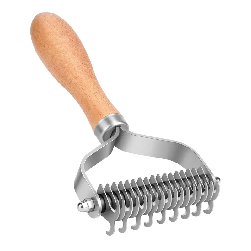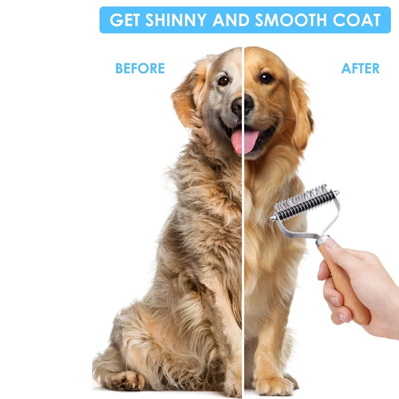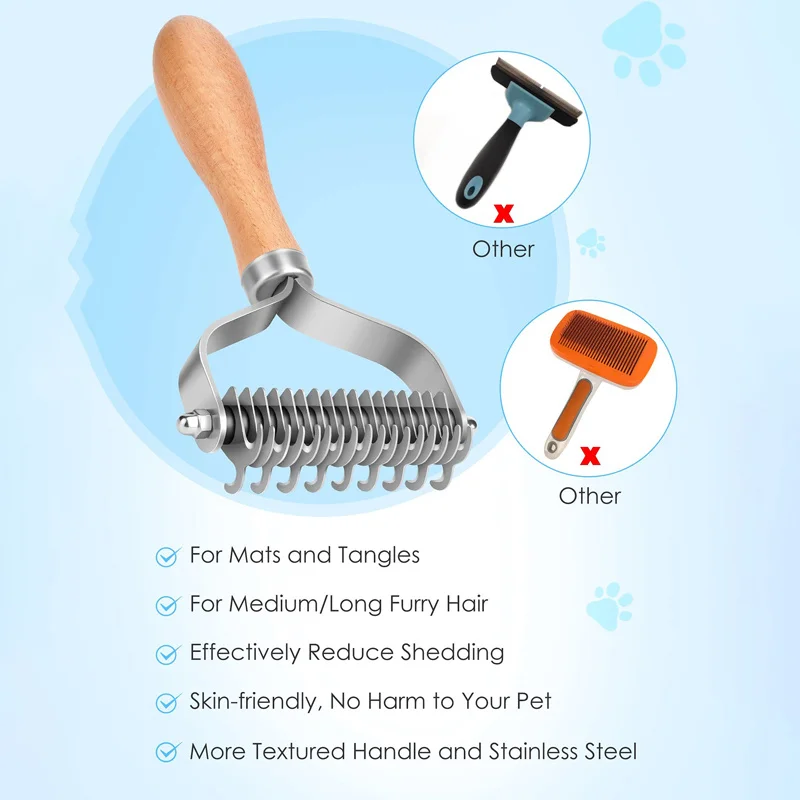 Para esteras y enredos/Para pelo peludo medio/largo/Reduce eficazmente la caída/Amigable con la piel, no daña a su mascota/Mango más texturizado y acero inoxidable