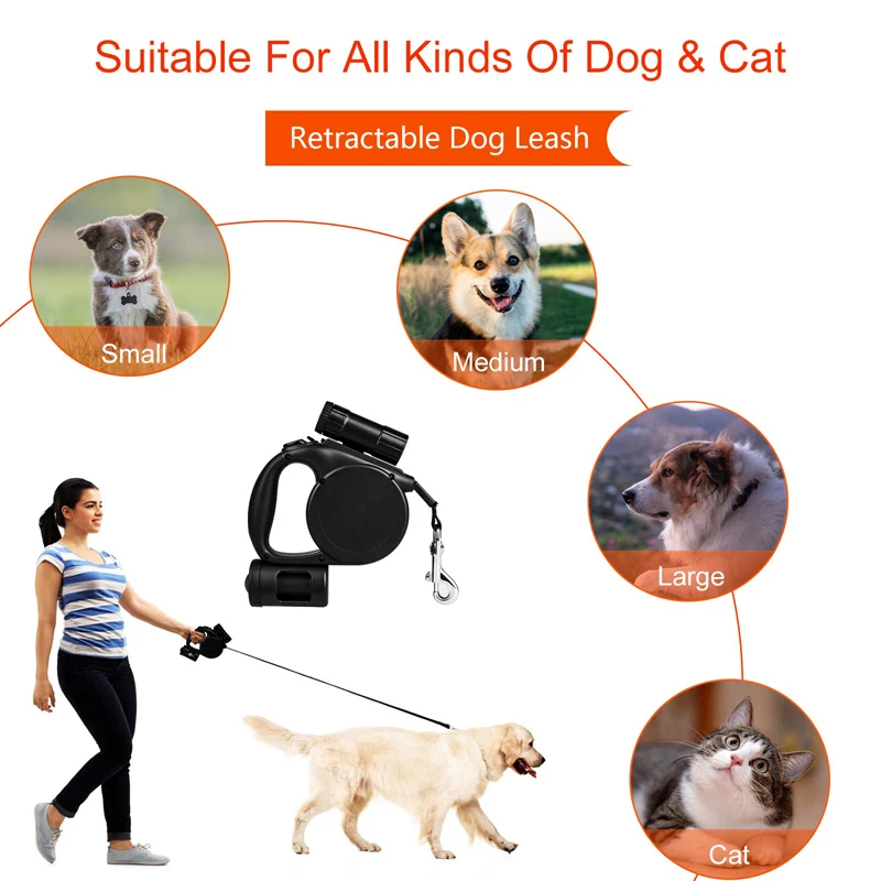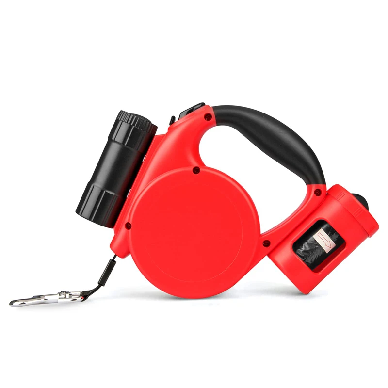 Interruptor de encendido LED/botón de control/mango ergonómico/linterna LED/caja de bolsas para caca/cuerda de remolque/níquel antióxido/longitud 16,4 pies/gancho chapado