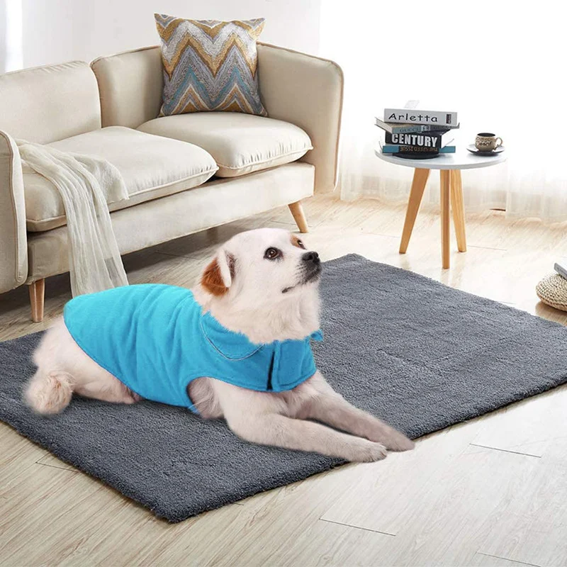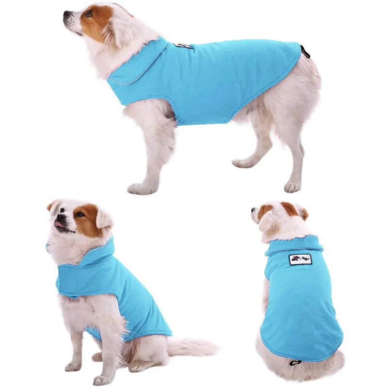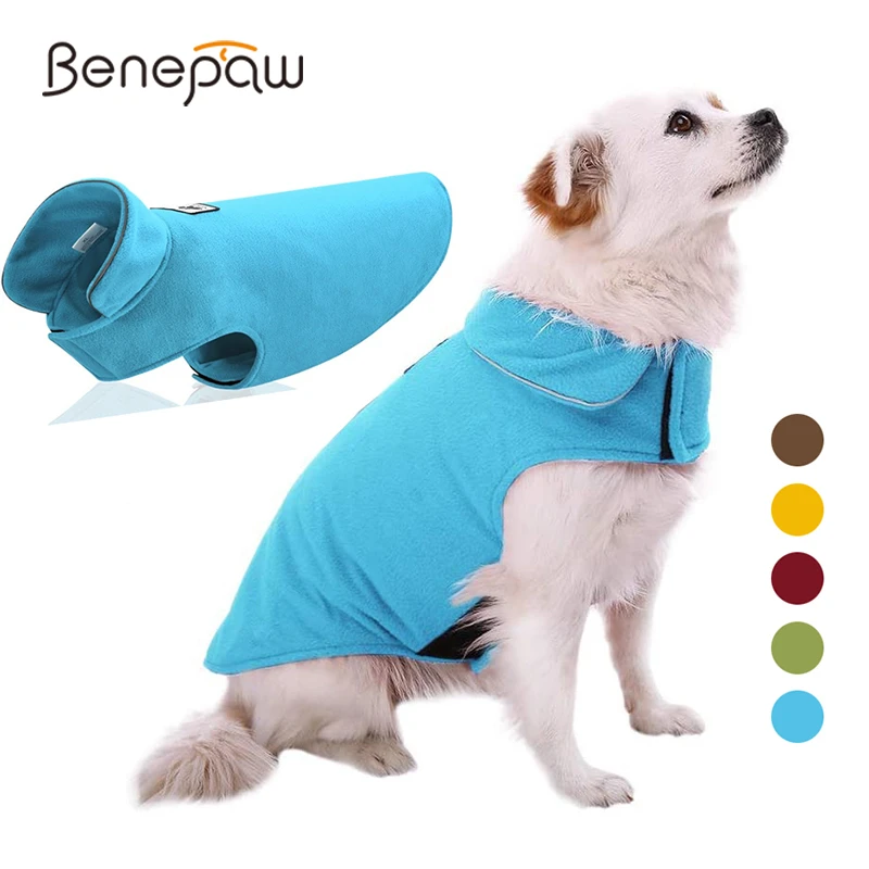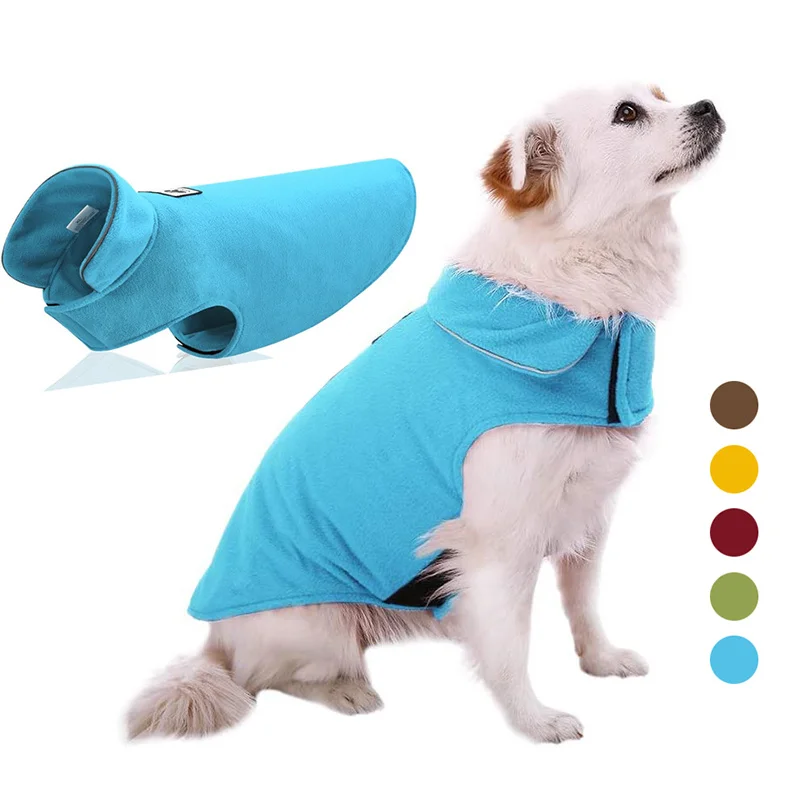 100% poliéster, hecho de tela de alta calidad, impermeable, a prueba de viento, con forro polar cálido en el interior. La chaqueta para perros viene con ribete reflectante para una fácil visibilidad por la noche.
