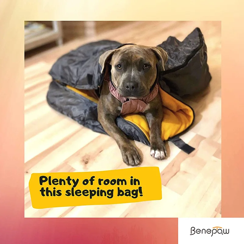 Tamaño perfecto, saco de dormir para perros Benepaw grande:Cama cómoda, suave y cálida para su mascota, hecha de poliéster exterior, con un forro polar interior suave y acogedor. Cama de camping cómoda y agradable para perros en la que les encantará estar