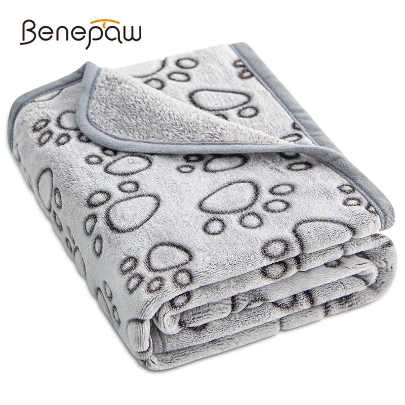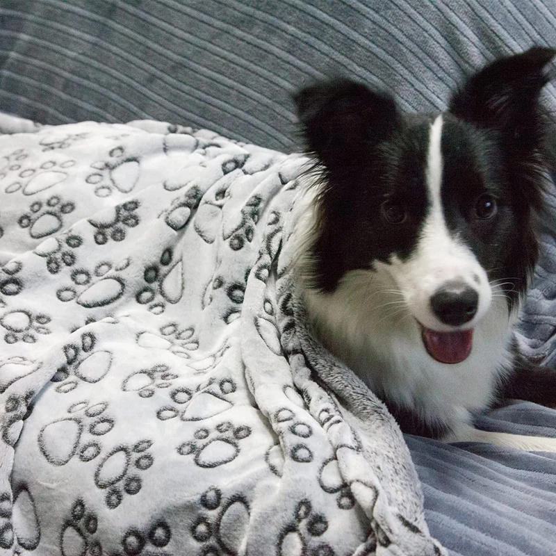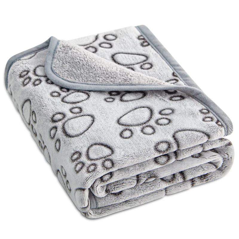 MATERIAL PREMIUM SOLO PARA MASCOTAS:Lana cómoda súper suave y cálida para sus mascotas, diseño exclusivo con estampado de patas bonitas en la parte superior, color gris sólido encantador en la espalda, sin miedo a orinar, morder y rasgar.