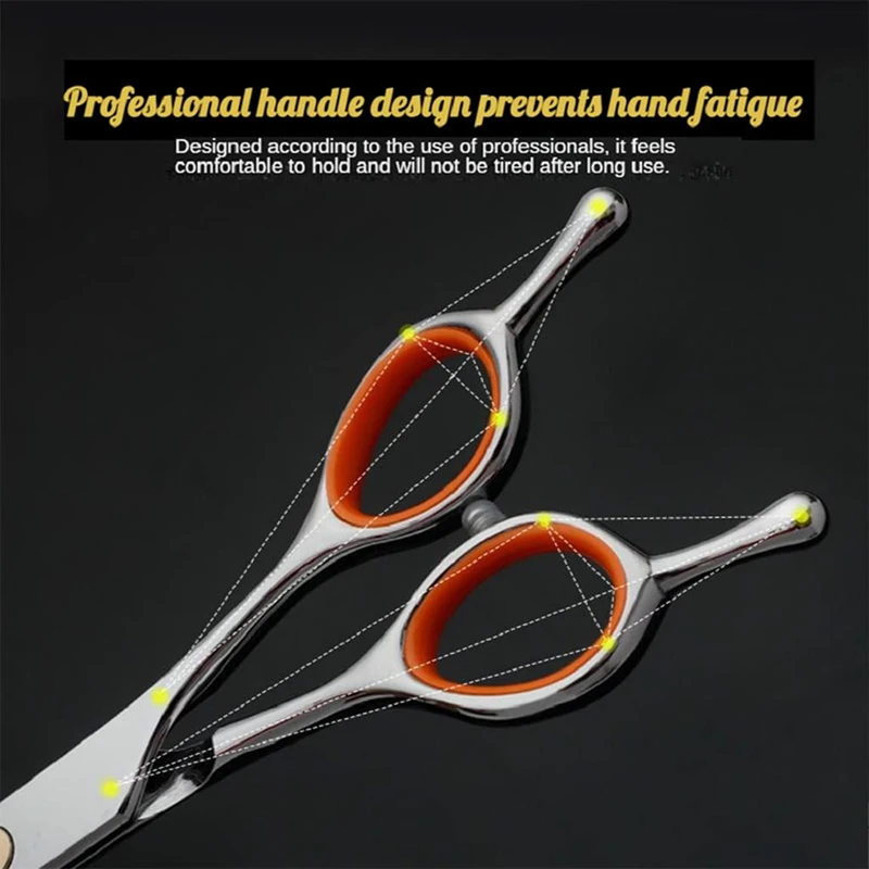 Tijeras DE ASEO versátiles:Nuestras tijeras de aseo para perros son perfectas para todo tipo de cortes de pelo de mascotas, incluido el recorte, la conformación y el adelgazamiento, lo que las convierte en la herramienta perfecta tanto para los dueños de mascotas como para los peluqueros profesionales.
