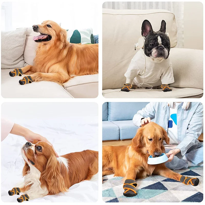 Triple Refuerzo-La cinta elástica autoadhesiva puede ajustar aleatoriamente el rango de adherencia. Para los perros con patas delgadas, el velcro de la cinta autoadhesiva triplica la estabilidad de los zapatos para que no haya posibilidad de que los zapatos se caigan de las patas del perro.