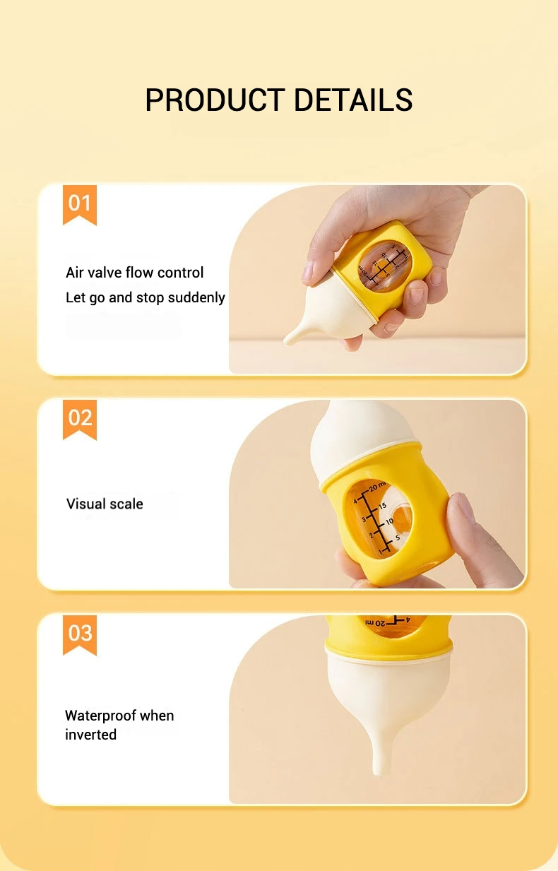 🌟 3. Fácil uso con una sola mano: El diseño ergonómico permite una alimentación cómoda con una sola mano, con marcas de medición visibles y una botella a prueba de fugas.