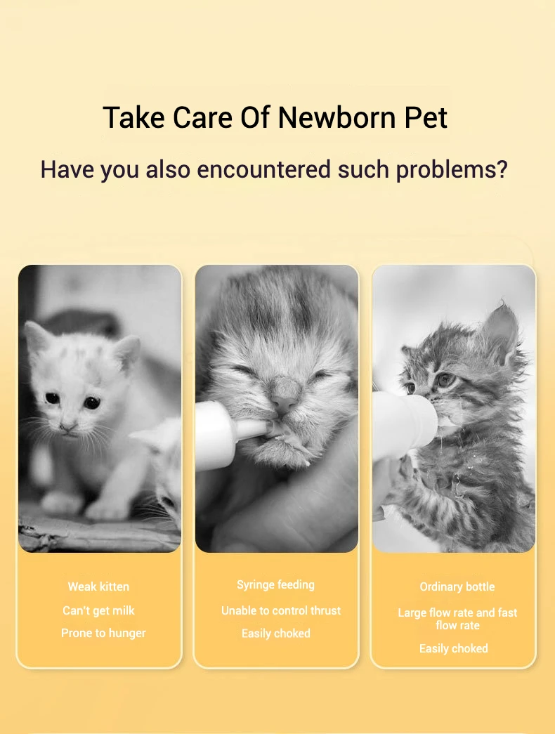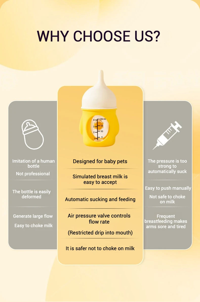 🌟 1. Botella de leche de silicona para cachorros y gatitos recién nacidos: Diseñado con una tetina natural similar a un bebé para controlar el flujo, evitando la asfixia y garantizando una alimentación fácil y segura para su mascota joven.