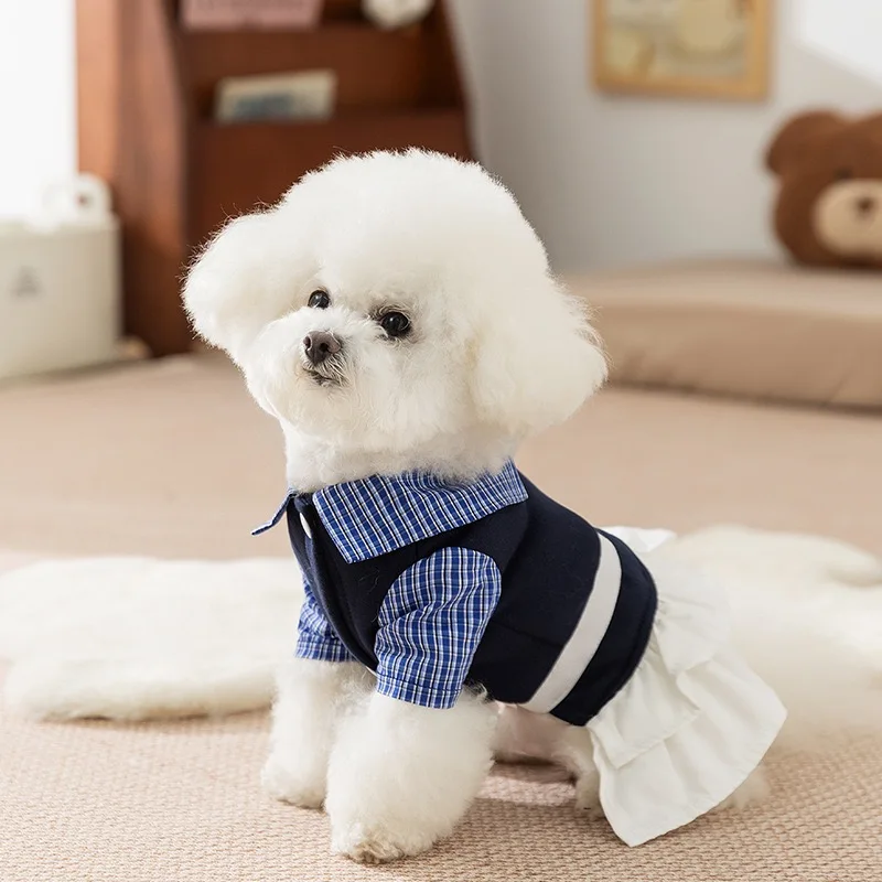 Bichon Frise-vestido para perro, camisa de celosía a la moda Preppy, ropa para mascotas y niñas, falda en capas de princesa, trajes personalizados para cachorros