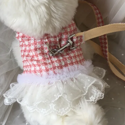 Bichones de tracción de encaje para perros pequeños y medianos, ropa a cuadros para el pecho y la espalda
