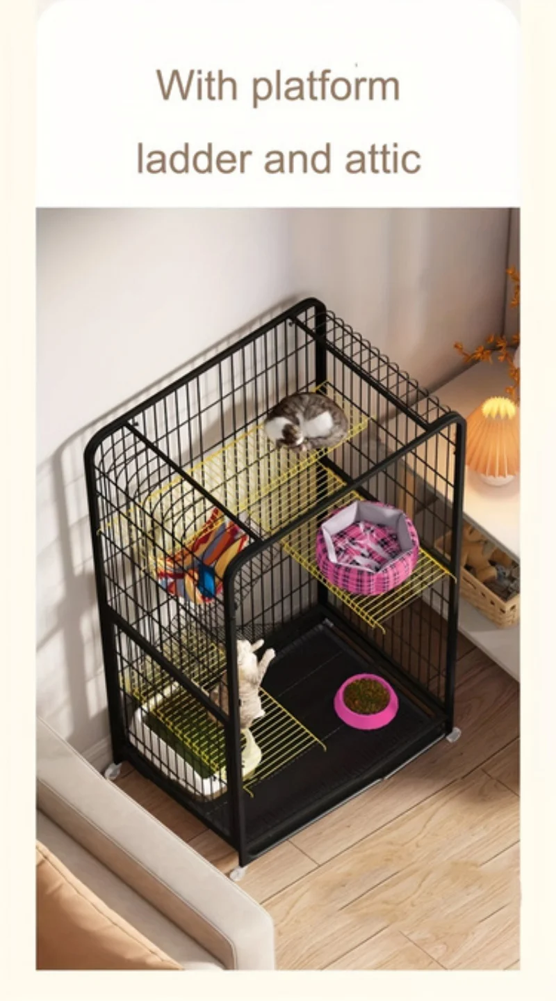 Diseño de doble capa: nuestro diseño de jaula para gatos aprovecha al máximo el espacio vertical, proporcionando a su gato más oportunidades para escalar y explorar. Los gatos son curiosos por naturaleza y les gusta trepar y observar las cosas a su alrededor. El diseño de doble capa de la jaula ayuda a mantener un peso saludable y un estado psicológico.