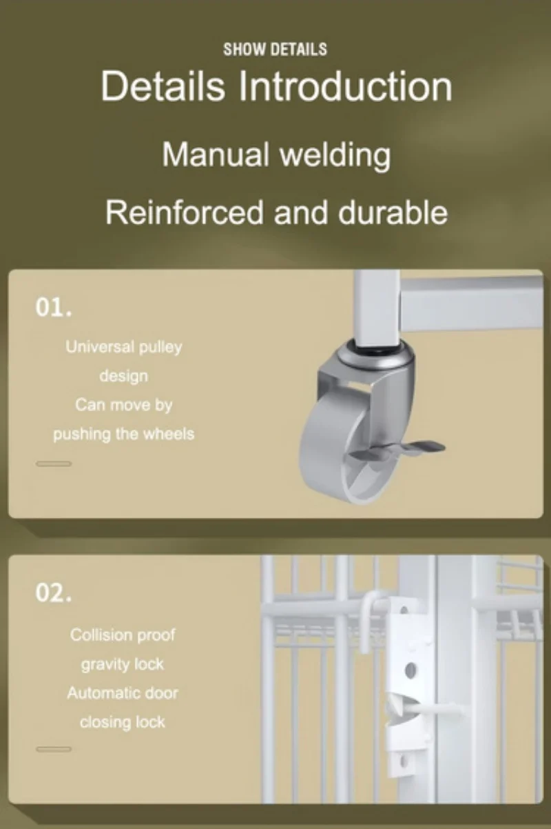 Jaula extraíble para gatos: Nuestra jaula para gatos tiene ruedas, puede empujar fácilmente la jaula para gatos de un lugar a otro sin transportarla. Esto es ideal para situaciones en las que necesita cambiar la posición del gato con frecuencia o mover al gato a una habitación diferente.