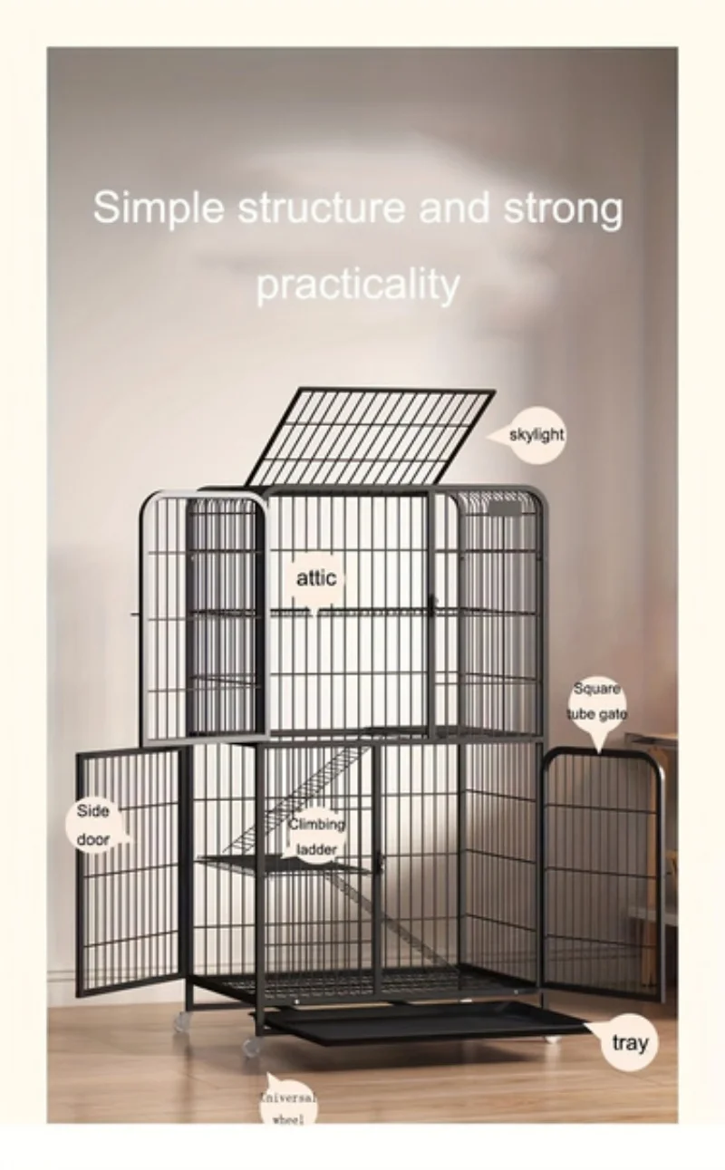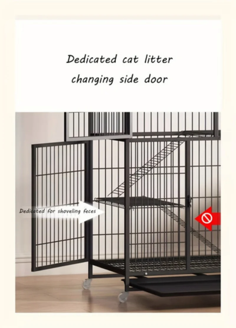 Diseño de múltiples puertas: la puerta delantera se puede utilizar para la entrada y salida diaria, la alimentación, la colocación de la caja de arena y la limpieza de la jaula para gatos. Mientras que las puertas laterales superiores o se pueden usar para una interacción más fácil con el gato, por ejemplo, para acariciar, sacar juguetes para gatos o acariciar al gato.