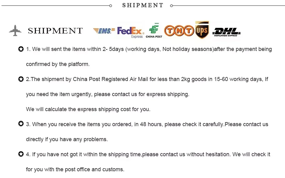 3.Por favor dígame su dirección actual después de su pago dentro de las 24 horas; De lo contrario, enviaremos su artículo según su dirección de Aliexpress, así que asegúrese de que sea correcto.