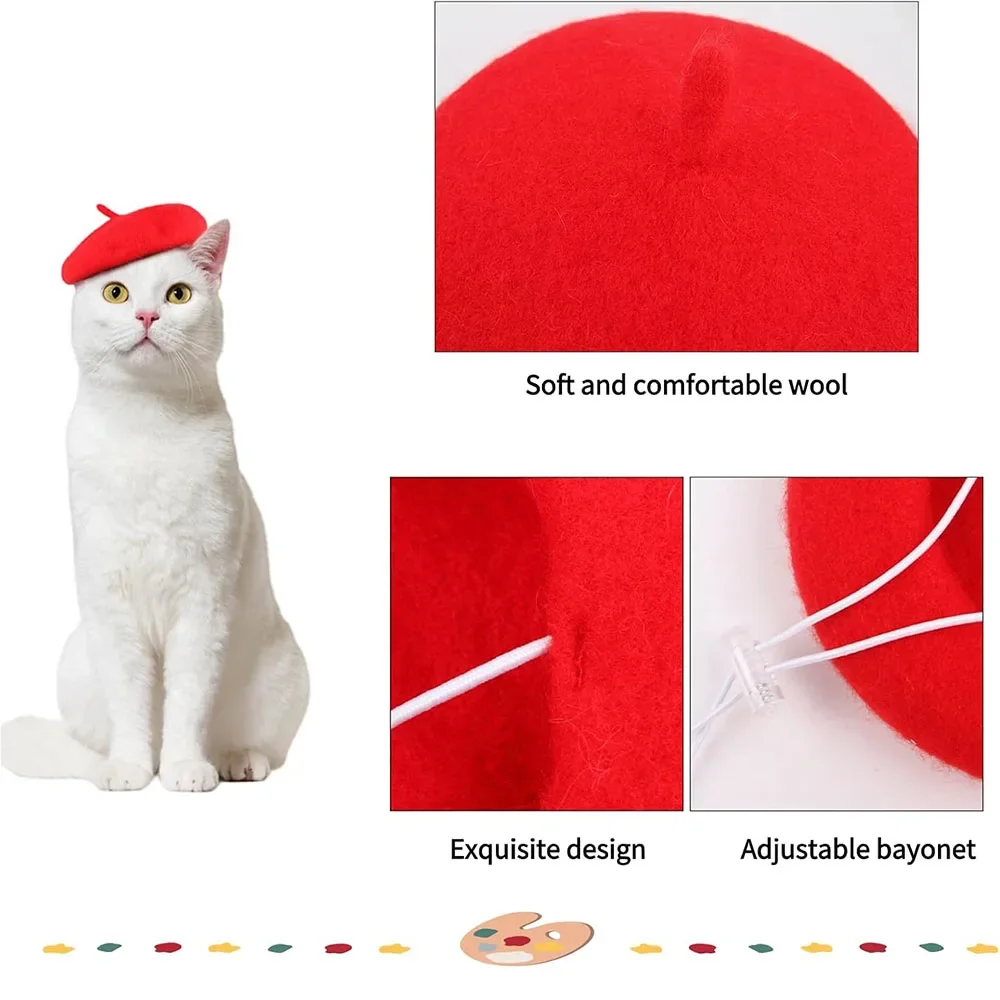 Boina de lana para cachorros, sombrero ajustable para mascotas para gatos, perros pequeños, bonito gorro estilo boina para gatitos, cómodos accesorios de moda para mascotas